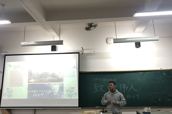 (通讯员 王寻)11月18日晚上七时,伟德国际19491903班在化工院117教室举行“麓山与伟人”团日活动,此次活动由团支书于露露主持,李育霖同学主讲,1903班全体同学参与。