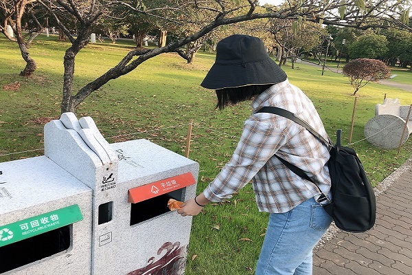 侯雪莹给班级同学分组并分发垃圾袋等志愿活动用品。15时同学们开始进入景区捡拾景区内垃圾并分类处理。志愿活动过程中同学将捡拾的垃圾扔进垃圾箱,并学习垃圾分类知识。活动结束时同学们有组织的离开景区,安全返回。活动过程充实又有意义。