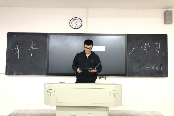 活动在《70秒读懂中国70年》的视频播放中开始。通过观看该视频,增加成员们对祖国70年发展的了解,激发成员们的爱国热情。其后主持人欧阳佳奇带领大家回顾70年以来祖国的“高光时刻”并对“青年大学习”线下系列活动提出了要求。在大家对“青年大学习”线下活动有所了解的基础下,欧阳佳奇组织全体成员阅读并学习习近平总书记国庆70周年阅兵讲话内容。成员们踊跃发言、积极分享,全力将习近平总书记重要讲话精神贯彻到底,落实到大学生活中去。