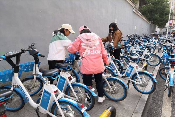 志愿者们在江边篮球场集合,由提前选出的六名小组长带领六个小组。经过活动前期的考察,决定通过抽签方式将六个小组分成两组,沿两个方向寻找单车点。在遇到单车乱放的单车点时,留下一个小组对单车点进行整理,其余小组继续寻找单车点。在活动过程中,不仅对乱放的单车进行了整理,同时对遇到乱停单车的市民进行劝说,并呼吁大家爱护单车,不要乱停乱放。