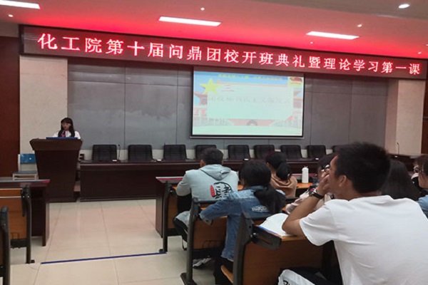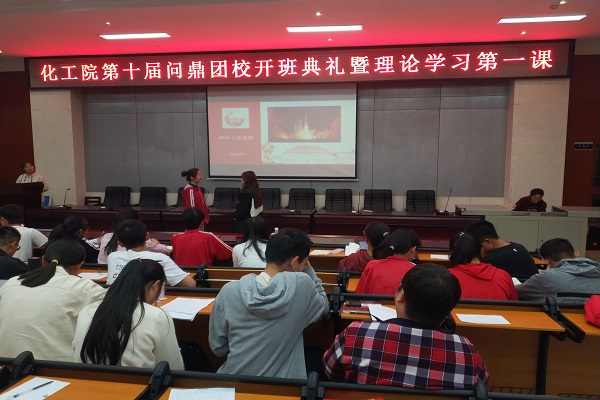 会议在主持人张泰源致开场词后正式开始,全体成员庄严奏唱团歌。院团委书记屈杜炜发言,屈杜炜强调团校成员一定要做好带头作用,要坚定理想新信念、志存高远、脚踏实地、勇于创新,并向成员们提出规范自身行为的要求,应做到“三思而后行”。团校秘书长王文馨向成员们介绍团校学习的相关细则以及团校结业的要求。