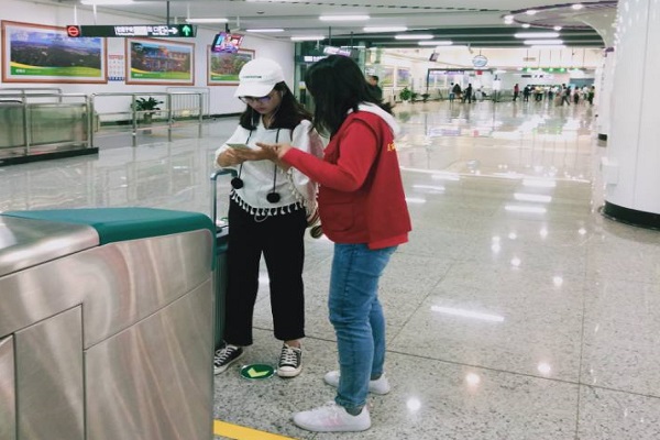 活动开始前由地铁站工作人员确定好工作岗位与人员分配,每一班安排好组长负责联络车站,组织本班志愿者到达服务站点、签到。此次地铁志愿服务岗位设置了TVM引导岗、闸机引导岗、屏蔽门引导岗、扶梯引导岗和换乘引导岗。志愿者们的主要任务是照顾老弱病残孕,带领并搀扶他们进站、出站,在售票处帮助不熟悉操作的乘客购票以及为外来游客指路等。志愿者们各司其职,尽心尽力地为乘客们答疑解惑、提供帮助。