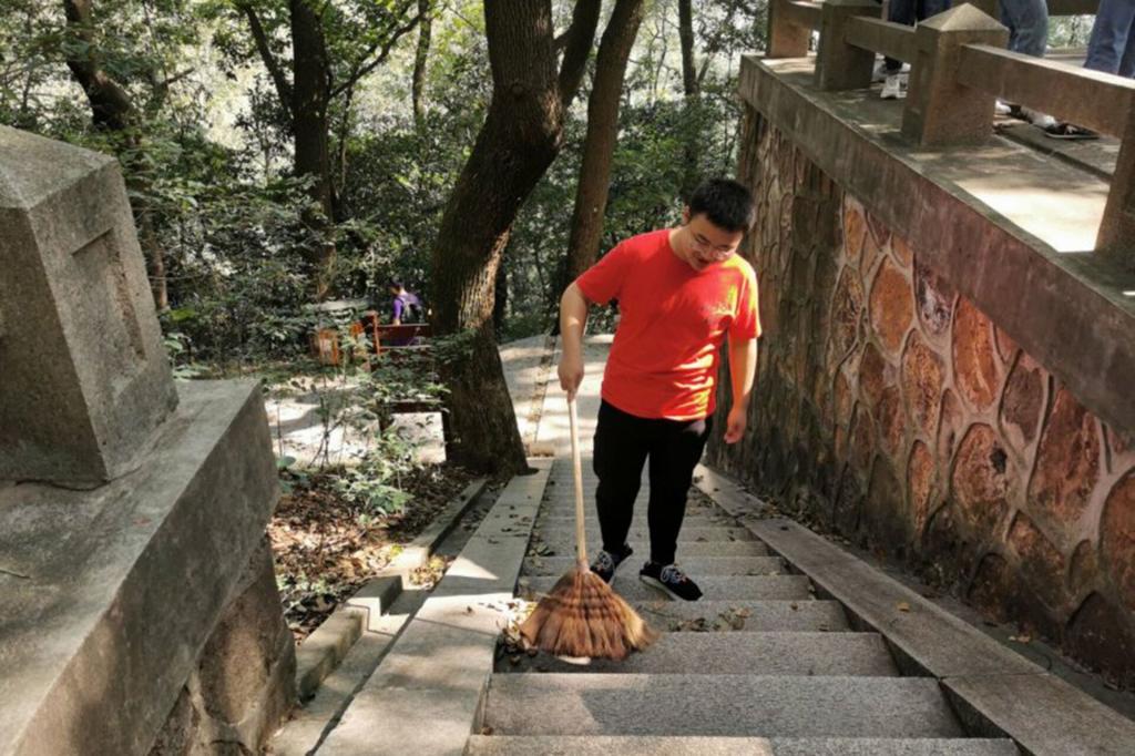 活动开始前,志愿者们在研究生五舍门口前坪集合,负责人安排好相关事宜后,40名志愿者平均分成两队,一队前往七十三军墓,一队前往七十七师墓。到达后,志愿者庄严认真阅读墓志铭,在相关负责人的带领下清扫枯叶以及垃圾,并将垃圾用袋子装好。 上午11时,活动结束,志愿者将装好的垃圾扔入山下的大垃圾桶中。