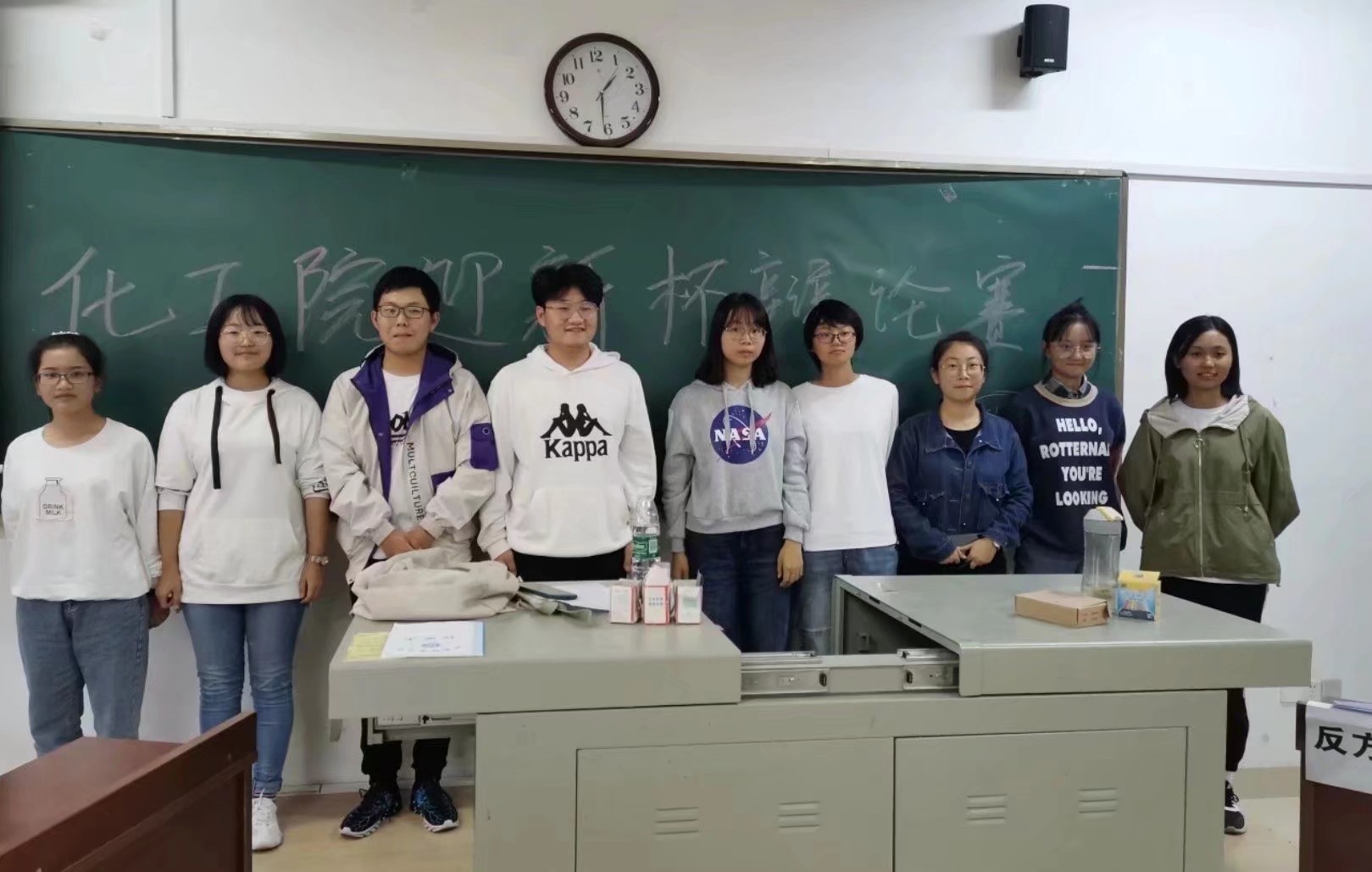 近日,化工院正在举行新生杯辩论赛。1908班两队报名参加,队名分别为不可制药队和无可制药队。两队前后分别与他队进行辩论比赛,双双获胜进入新生杯四强。1908班进行的两次辩论都是与对手龙争虎斗一番,辩的有来有往,最后略胜一筹。