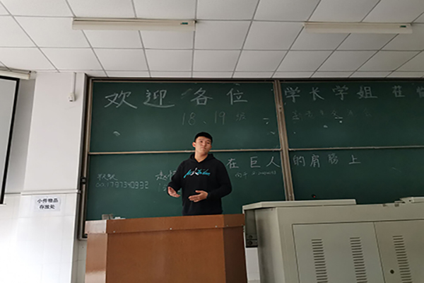 首先主持人致开场辞并邀请新生及老生做自我介绍,18、19级的同学都非常热情。1807班班长赵恒淼率先发言,为新生讲解了在学习生活中需要注意的方面和应该拥有的意志品质,新生们受益颇深。年纪长向千、张科做了补充发言,为新生讲解了有关考研、保研等的事宜。最后是1807班学委赵秋悦发言,她为新生讲述了自己做志愿者的经历,并鼓励大家参与志愿者活动。在自由提问环节中,新生询问了有关奖学金评比的细节问题,赵恒淼也进行了详细的解答。交流会最后两班进行了大合照,并建立了QQ群以方便以后的交流。