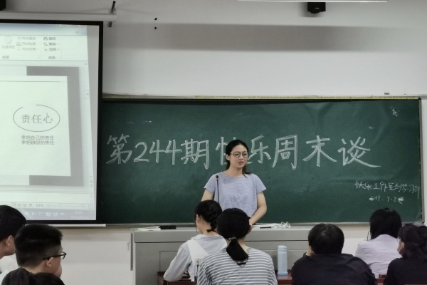 9月28日上午九时,伟德国际1949学生会快乐工作室携手学习部一起开展了第244期快乐周末谈。此次快乐周末谈以“经验交流塑新青年,喜迎七十盼百年梦”为主题,邀请了化工院2019级总班导张鑫岚、2017级刘晟、院学生会主席刘湘作为嘉宾,与全院学生一起分享学习生活经验、共祝祖国母亲七十周年生日快乐。