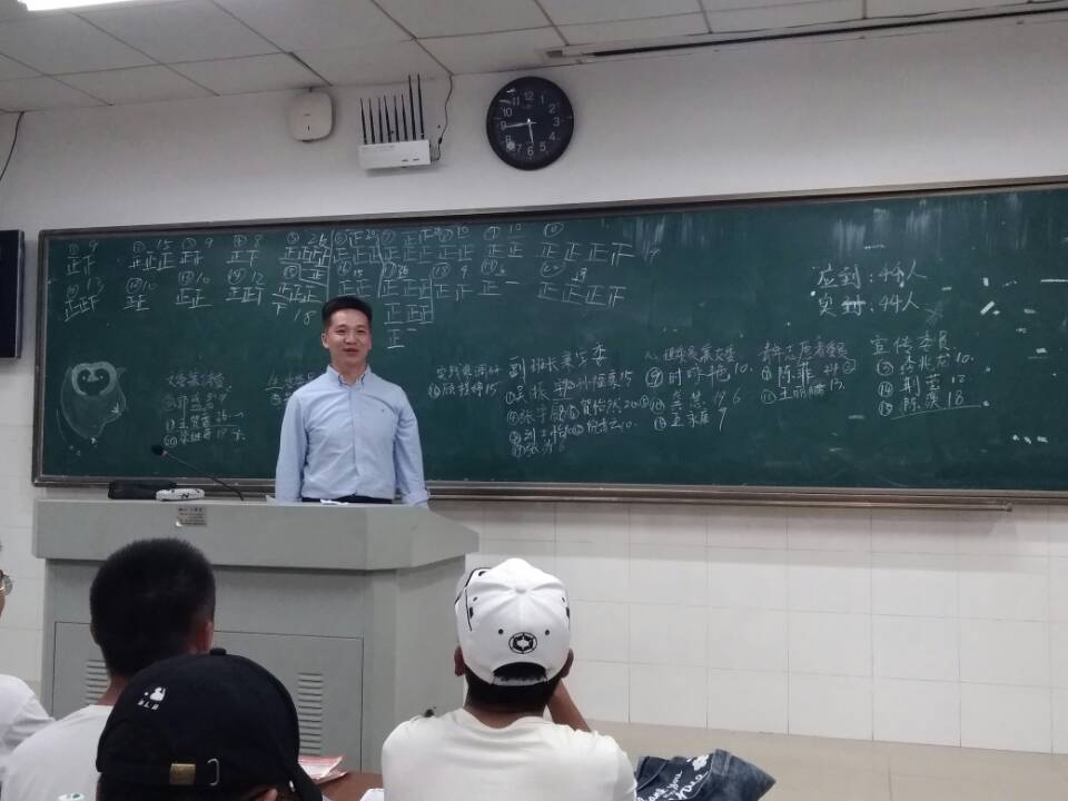 竞选期间,19级辅导员屈杜炜、总班导张鑫岚、邹振宇到场观看并鼓励学生竞选。屈杜炜对1908的发展学习做简要指导。