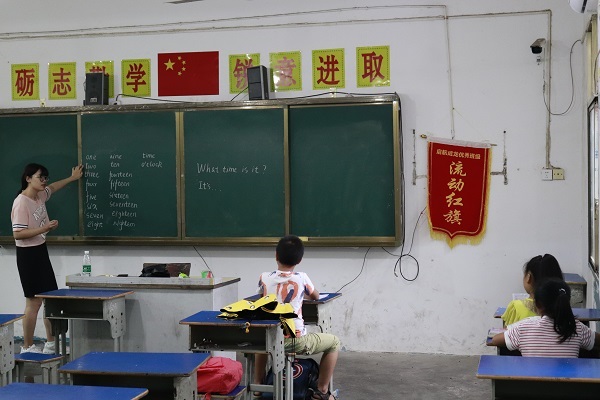 7月12日早上7时整,伟德国际1949学生社团联合会赴衡阳市祁东县成龙学校暑期实践团组织第一次早自习。早自习主要由英语老师邢傢淇带领拼读单词,语文老师吴汗源组织朗诵古诗等。