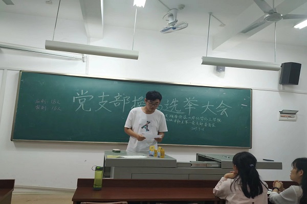 三位同学进行个人竞选演讲,经过民主投票,选出了党支部书记高元博,组织委员李禄文和宣传委员张碧霓,三位委员表达了自己愿意为党支部和同学们服务的决心。