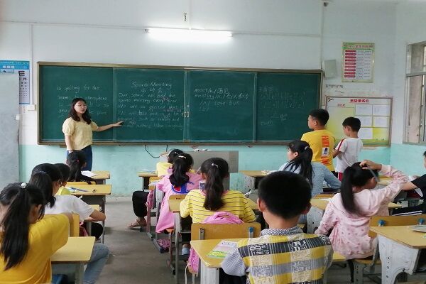 八时开始第一节课的教学活动,二、三、四年级的学生在欧华宇老师、刘晓老师的监督下自主学习,同学们认真地或写作业或背拼音,五年级的学生由吴翕杰老师讲授语文知识。上午的其他三节课分别由各个年级的语数英老师完成。经过一中午的休息,学生们精神充沛,下午在老师的带领下,完成了体育课和电影课等课程。