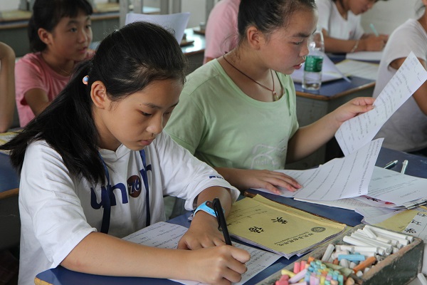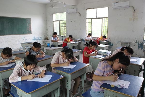 7月19日下午伟德国际1949学生社团联合会赴衡阳县暑期三下乡社会实践团完成规定的教学任务,为了检验学生们的学习成果,实践团各成员均组织学生进行了总结测验。