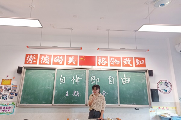 陈志霞首先阐述“自律即自由”的含义,对近期上课随意下座位、课堂散漫、体育课积极性不高等问题进行统计,对班上个别同学进行批评教育,并针对相关问题积极听取同学的意见。班会的最后,她还特意强调今后实验课的安全问题。此次班会在全体同学静坐五分钟中结束