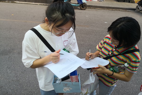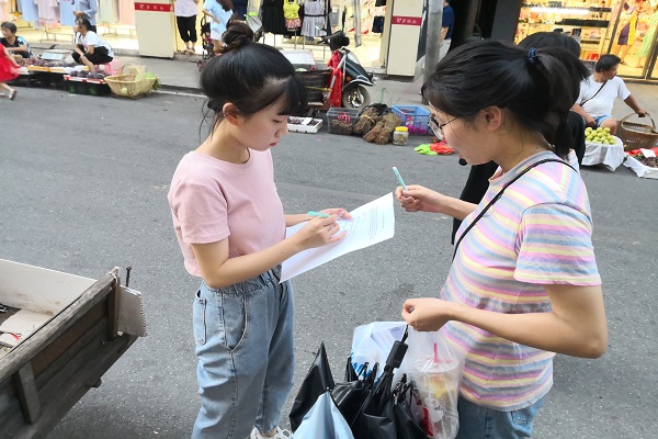 实践团分为三组着“垃圾分类”“网络依赖性”“大众刷短视频”“校园冷暴力”“中小学生补课现状”五个不同的主题外出调研。调研形式主要以发放问卷为主,调研地点则由于各小组调查问卷的主题有差异,因此所选地点各不相同,多集中于商场与书店。