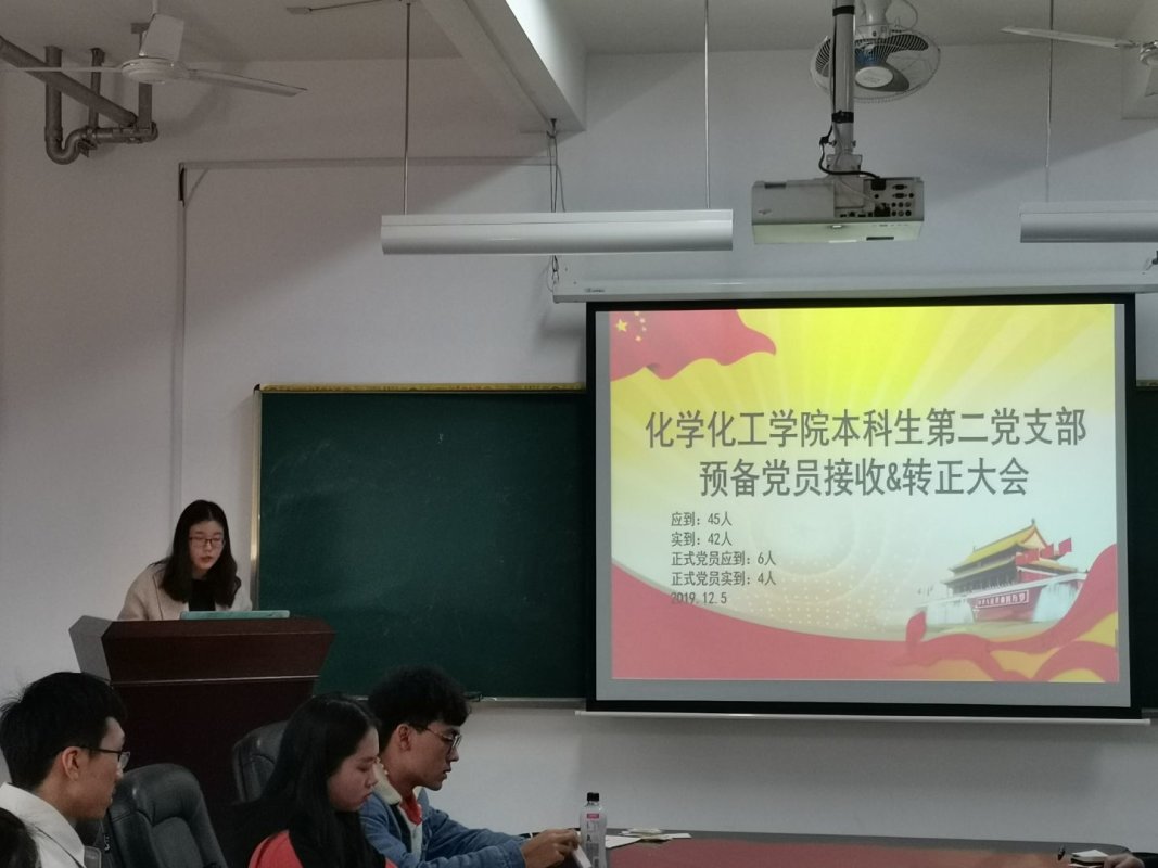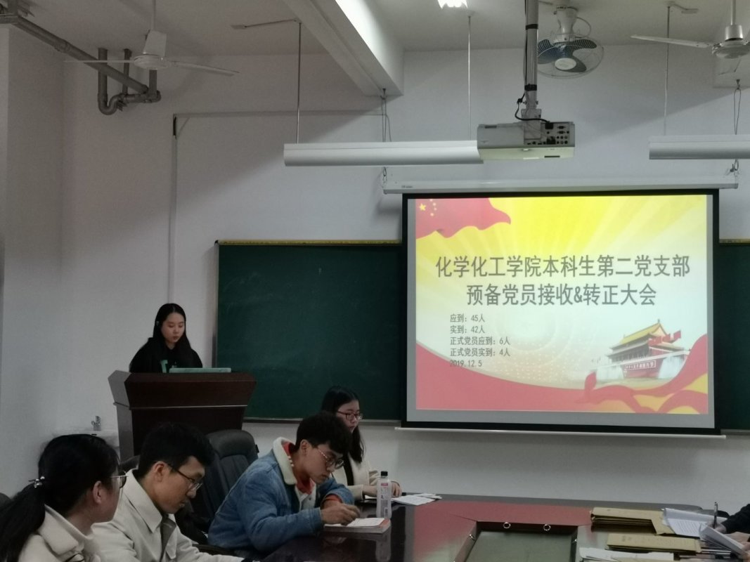 (通讯员梁茎玮符立志)12月5日中午,为了迎接新的血液,伟德国际1949本科生第二党支部在化工院206会议室举行了预备党员接收暨转正大会,会议由本科生第二党支部第二副书记彭思主持,本科生第二党支部全体成员参加了此次活动。