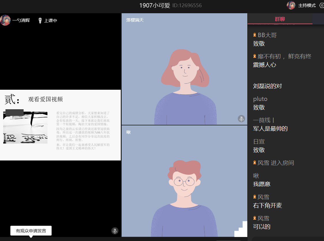 (通讯员 杨诗薇)3月20日14时30分,19级辅导员屈杜炜,1907班导师袁露及1907班全体同学通过群课堂的方式,加入到线上班会活动中,此次会议由班长向皓和团支书王思仪共同主持。
