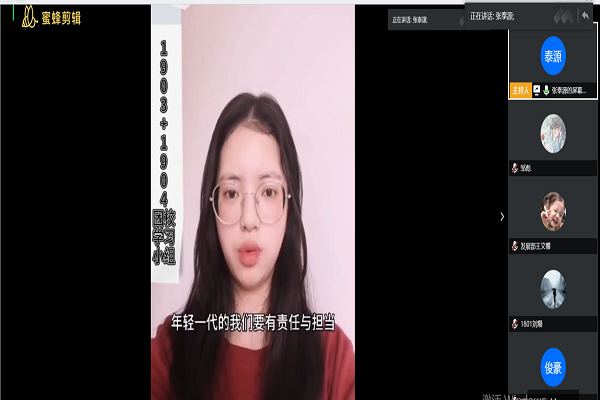 会议在发展部干事张泰源致开场词后正式开始。各小组分别从“巴黎和会,中国外交失败”引发的五四青年运动、“一二 九运动 ”、 “1954年一月成立的青年突击队”以及“新时代青年”这四个阶段出发,展开演讲。学员们结合相关历史事件讲述了五四运动的起源,发展以及五四运动带给如今新时代中国青年的感悟。之后,主持人播放了由各团校小组制作的关于“传承五四精神,凝聚青春力量”的视频。视频中,学员们依据抗疫期间青年所做出的贡献与新时代青年的责任与义务,发表了自己的感想。