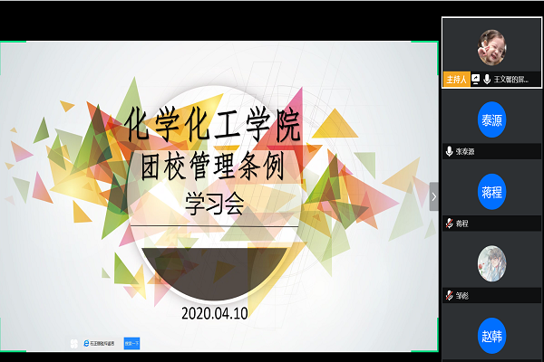 (通讯员 王文馨)4月10日中午,伟德国际1949团校管理条例学习会于线上召开,参与此次学习会的有化工团委学生副书记赵韩、院团学组织各部门部长及18、19级各班团支书。
