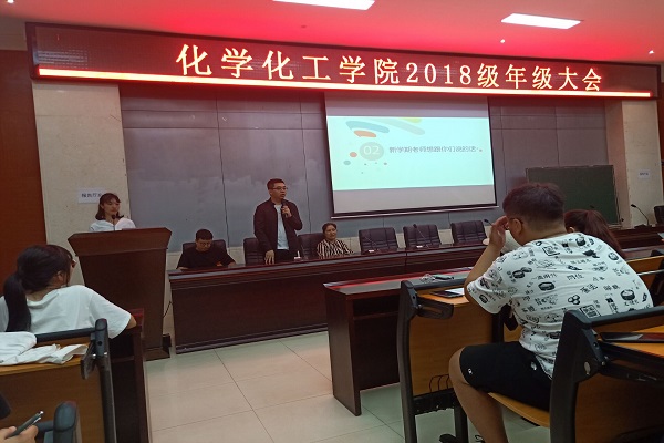 (通讯员 宋诠憬)9月8日上午10时50分,18级新任辅导员谢云霞、徐天律在化学化工院230教室举行了年级大会,院党委副书记罗艳出席本次会议,18级全体学生参加会议。