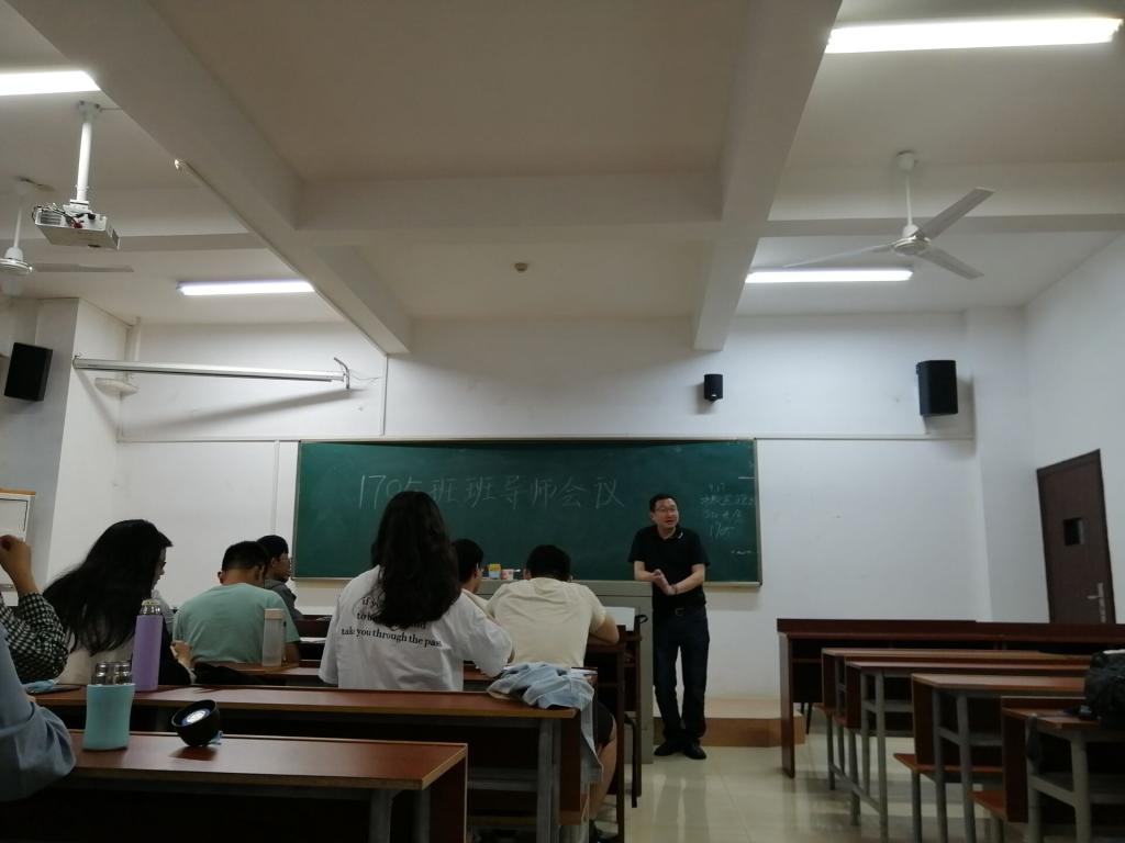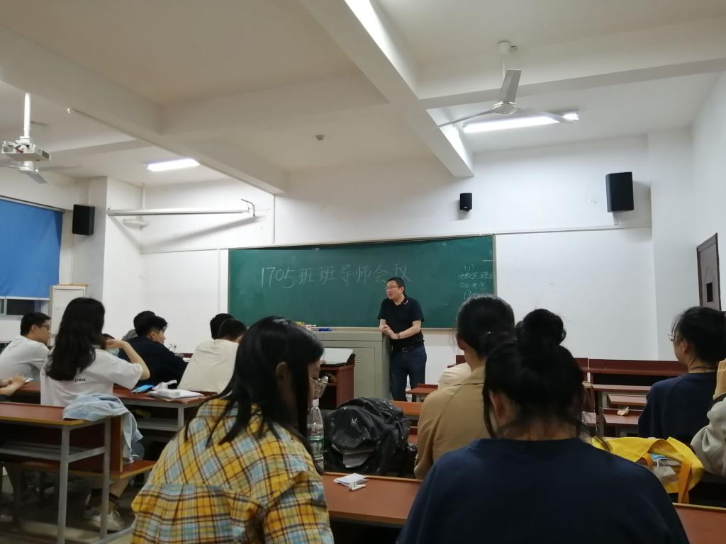 会议伊始,班长裴鋆清点到会人数,应到27人,实到27人。而后,班导师陈波讲话,为1705班同学提出了四点建议:一、当学会做人,培养基本的道德观,要讲求诚信。避免三聚氰胺、地沟油类似事件的发生;二、当认真学习,要破"四唯",现阶段切忌唯考试论,应有真才实学;三、要培养自己的大脑,学会整合组装信息,进而构建知识体系;四、当阳光乐观,身心愉悦有利于学习。”最后,陈波老师就目前就业形势为同学们做出了讲解,再次告诫同学们要努力学习,提高专业知识水平,为今后的应聘就职打下良好基础。