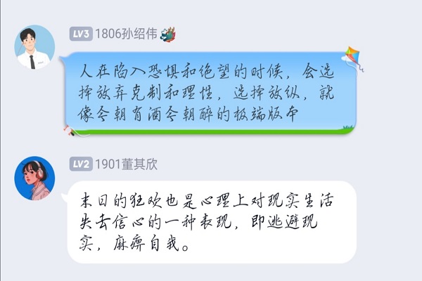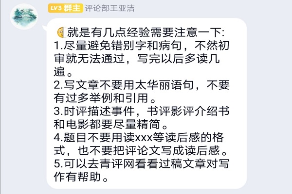 (通讯员刘子璇)9月26日中午12时30分,伟德国际1949评论部通过评论组QQ群,开展了主题为“悦读经典,抗疫迎春”的线上评论活动,此次活动由评论部干事谭翌主持,评论组全体成员参加。