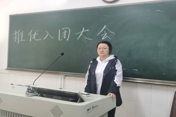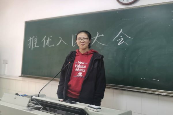 推优入团会议开始,由化工院2002团支部班长王俊昊简介了会议流程、投票规则以及“问鼎”团校的基本情况,同时公布此次推优入团的候选人。随后,由10位报名的同学依次上台发言,讲述了自己对中国共产党的认识,也表明自己的思想状况,报名理由,以及自己今后在思想政治方面学习的打算与计划。