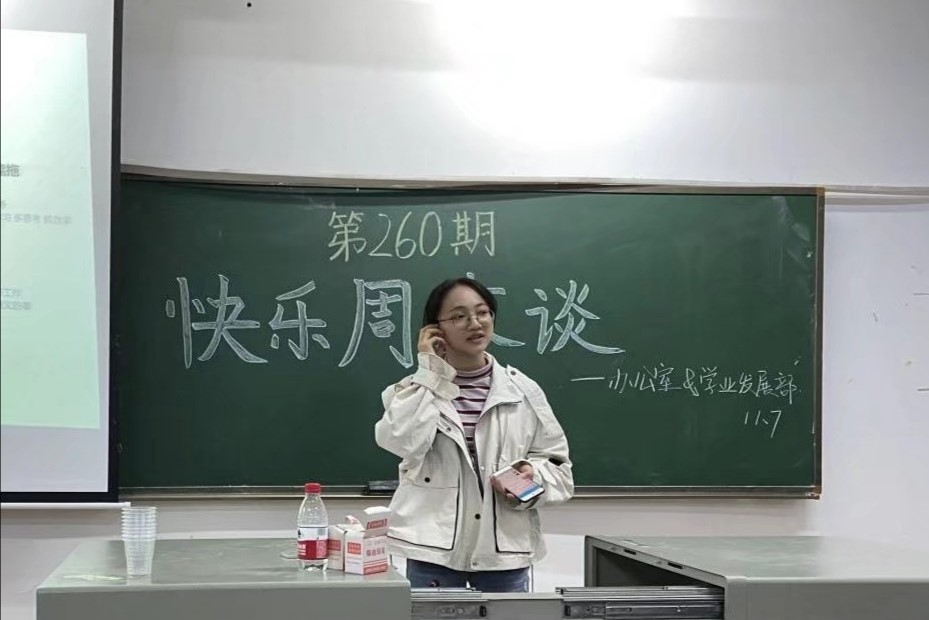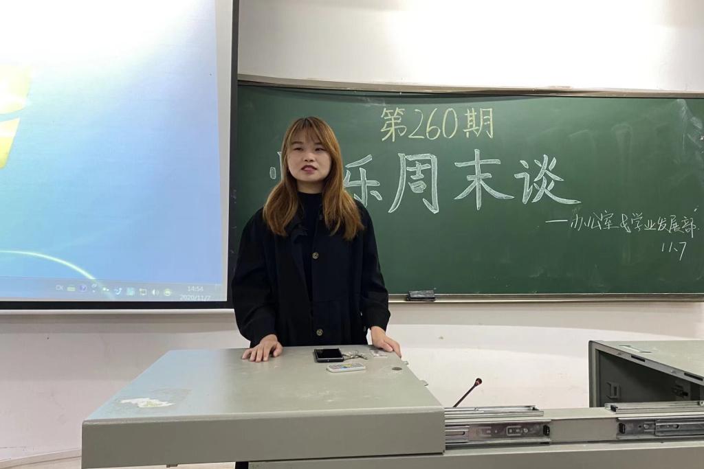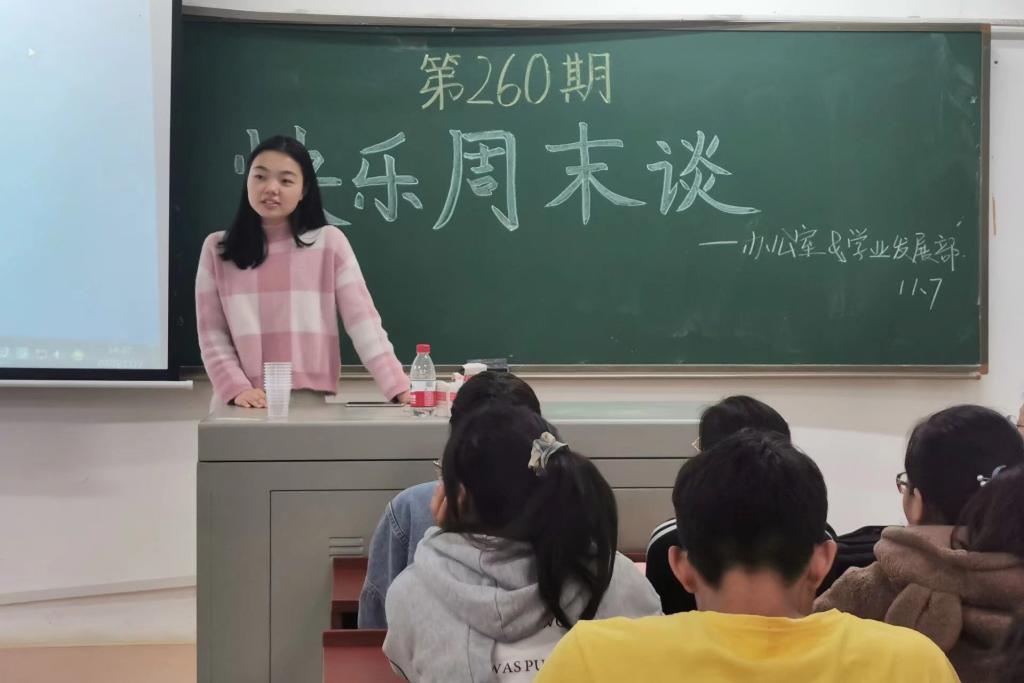 (通讯员 谢桢)11月7日下午14时30分,伟德国际1949学生会办公室携手学业发展部在117教室举行第260期快乐周末谈,邀请了李敏、吕汶梅、付辛辛三名同学以及尹笃林老师,由办公室负责人徐新宇主持。