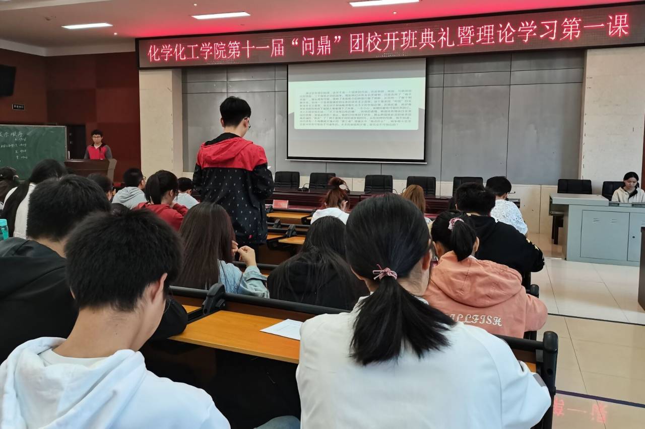 (通讯员 孝宇)11月12日12时30分,伟德国际1949第十一届“问鼎”团校第一期理论培训班开班典礼暨理论学习第一课在报告厅召开。参会人员为化工院学工办主任屈杜炜,团委书记欧阳唯一,2018级辅导员谢云霞,第十一届问鼎团校第一期理论培训班全体学员以及院团委青年发展工作部全体成员。