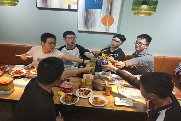 为保证活动的顺利进行,此次活动内容张玉琼以班级群投票的形式征求了班级成员的意见,选出了本学期男生节的活动形式。在张玉琼的有序组织下,班级成员自行组队并按时到达活动地点。现场气氛活跃,同学们热情高涨。在用餐过程中,班级成员们畅聊人生,同时享用着美食。待聚餐完成后,在姜文滔的协助下,班级成员安全到达学校宿舍。