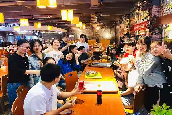 14时30分,大家准时集合在江边食堂。准备好食材后,林芷乔和食堂的叔叔阿姨交流沟通,借到了所需的厨具。同学们气氛十分活跃,每个人都行动了起来。班上的五位男生还收到了男生节特定礼物:定制罐装可乐。经过同学们一番努力,同时在食堂叔叔阿姨们的帮助下,饺子被端上了桌子,同学们围坐一桌吃饺子。