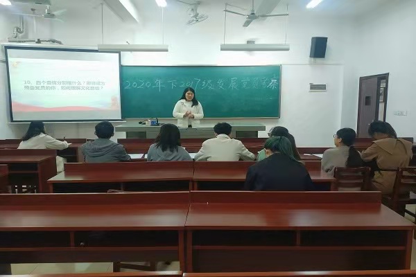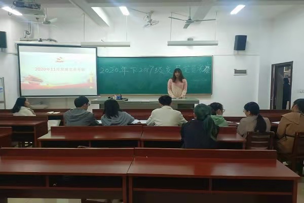 发展对象依次站在讲台上向付玉丽,党员同志代表们作自我介绍,并根据自己的实际情况以及对党的理论学习阐述入党动机。付玉丽从党章党规以及时政等多角度向发展对象提问,各发展对象也依据自己学习积累的理论知识以及亲身感悟回答了付玉丽的问题,也在回答问题的同时反思自己的不足之处,寻找提升自己的方法。