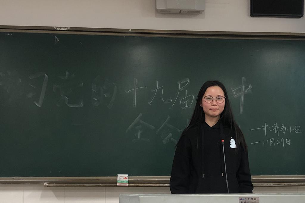 团委宣传部负责人邓可围绕第十九届五中全会这一事件,带领同学们观看大会视频,进一步讲解了在大会上通过的《中共中央关于制定国民经济和社会发展第十四个五年规划和二〇三五年远景目标的建议》,并分享了自己的感悟。观看视频后,小组各成员展开交流,并有三位成员上台发表了自己的感想。最后,邓可对此次活动作出总结。