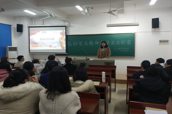 主持人徐一凡宣布活动开始,大家集体讨论学习习近平法治思想,进一步把握核心要义。全体党员受益匪浅,其中桑晓茹、朱忻怡等同志进行分享交流了自身对于宪法的认知和理解,他们都强调,身为年轻党员,要严格遵守宪法,以身作则,成为尊重宪法和维护宪法的先进力量。