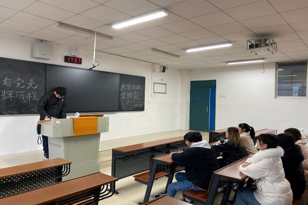 参与活动的成员提前到达301教室,并板书此次活动主题。在活动期间,杜斌讲述了中国共产党的发展历程,对党的光辉历史做出总结,党经历了十八次历史转折,并在错误中学习,不断完善自我。杜斌并鼓励当代青年学习党的精神,不害怕错误,从错误中学习经验,达到不断进步,完善自我的目的。