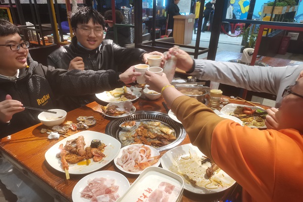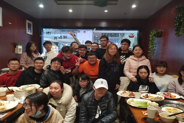 (通讯员王丽鹏)2021年3月22日下午6时,19级浩青实验班全体同学各自从伟德国际1949出发,在步行街韩大地海鲜自助烧烤城集合,开展班级聚餐活动。此次活动由女生委员王丽鹏主持。