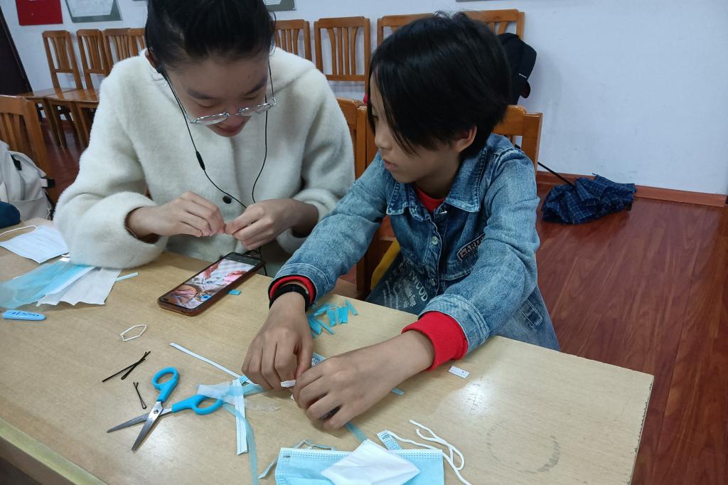 活动伊始,会员们和小朋友们一起学习星星棒发夹的制作技巧,会员们帮助小朋友们完成星星棒发夹作品,并在活动结束后将作品赠送给小朋友,参加社团活动的全体成员在社区合影,并主动将会场打扫卫生。
