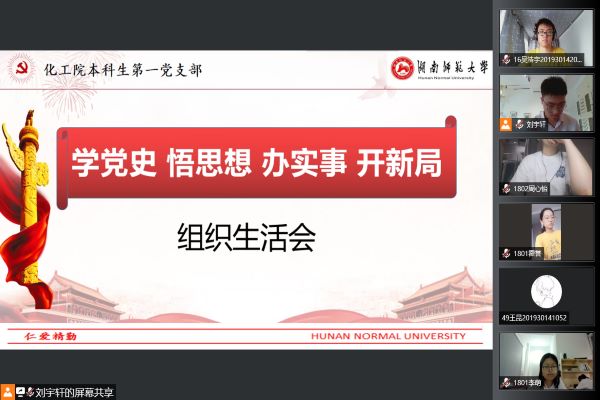 化工院第一党支部书记欧阳唯一发言,深刻关心了支部党员的党史学习情况和日常生活,并要求党员同志们积极响应习近平总书记的号召,在建党一百周年纪念日,充分学习党的历史,领悟党的思想。张筱瑶以学党史为题播放了相关视频,同时,张筱瑶、李萌、吴浩宇、余益根、潘弈、谢熠等多名党员分享了自己在学习党史的过程中的思想感悟。