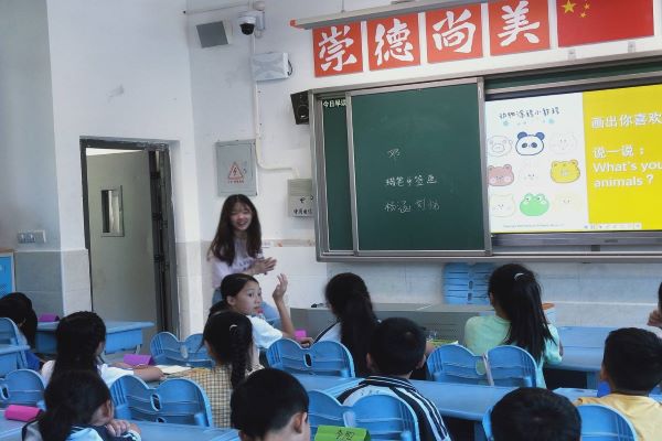 开始上课后,邓思佳要求同学们先进行自我介绍,增进了同学与老师以及同学之间的感情。接着,邓思佳正式介绍此次课程“蜡笔牙签画”。邓思佳提出了“最喜欢的小动物”和“我眼中的尚宇中学”两个话题让同学们讨论,同学们发表了自己的想法和观点。讨论结束,同学们充分发挥想象力,用彩色蜡笔在画纸上画出了自己最喜欢的小动物或者自己眼中的尚宇中学,然后在邓思佳的指导下用黑色蜡笔和牙签进一步完善自己的画作。