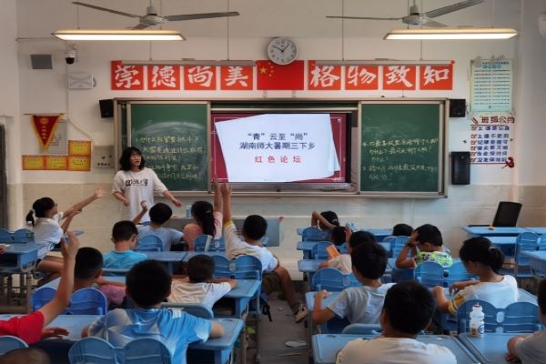 (通讯员 欧阳晴)7月13日8时,为加强同学们对革命先辈的感激之情,伟德国际1949“青”云直“尚”队在衡阳市常宁市尚宇高级中学举办第一期红色论坛。由欧阳晴进行授课,多名助教辅助教学并维持课堂纪律。