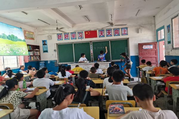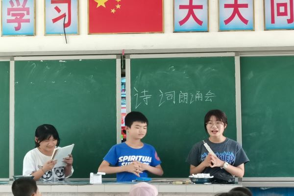 (通讯员 王蕊)7月13日下午2时,为巩固五年级学生们对诗词内容的理解以及朗诵诗歌的能力,化学伟德国际1949金岩一夏队在张家界市慈利县金岩小学开展诗词朗诵会。五年级班主任王蕊组织学生进行此次朗诵会。