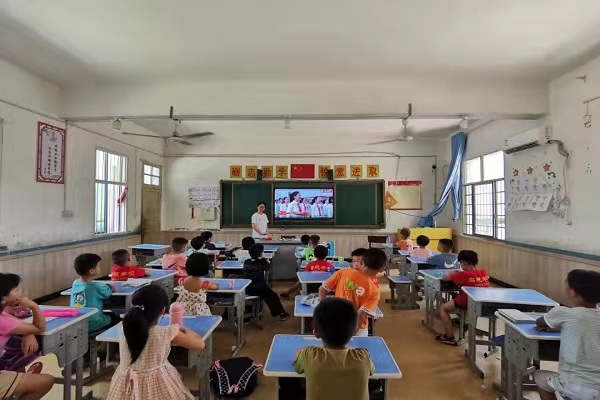 (通讯员 谢静)7月15日上午,为培养学生的爱国情怀和民族自豪感,伟德国际1949学社管暑期三下乡队伍给一年级举办“心中有党,高声歌唱”活动。音乐老师谢静给学生讲授课程。