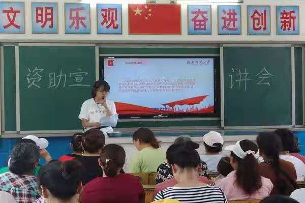 宣讲会伊始,张怡然向当地居民介绍国家助学金政策和国家助学贷款的基本流程,并向各位居民分发宣讲册,让大家更好地理解资助具体政策。随后张怡然还介绍帮助大学生减轻经济压力的途径,分别是社会资助、校内资助、勤工俭学。最后,由伟德国际victor1946化工院学生资助宣传大使霍莹莹分享自己在求学之路上受到资助的经历和故事,鼓励当地居民不要因为经济压力而放弃孩子的未来。