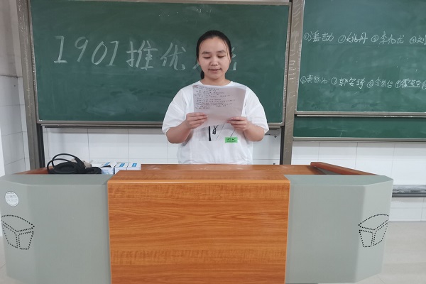 首先由班级宣传委员张思雨简单介绍此次会议流程及十位候选人情况,之后,候选人按照抽签顺序依次发言,阐述自己的竞选理由及优势。发言结束后开始无记名投票,每位同学在十位候选人中选择五位作为自己推荐的对象。投票完毕后由班级同学对候选人进行提问,刘畅等同学就入党动机、入党后的目标对候选人进行提问。李兆龙等候选人表示,会努力提高思想觉悟,提高自身成绩,全心全意为同学们服务。在投票中出现了相同票数的情况,张思雨立即组织同学们进行第二轮投票,最后依据票数由高至低做出了排序。
