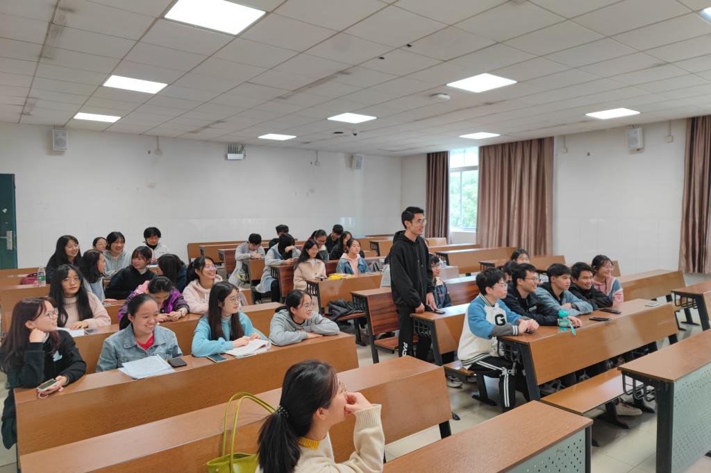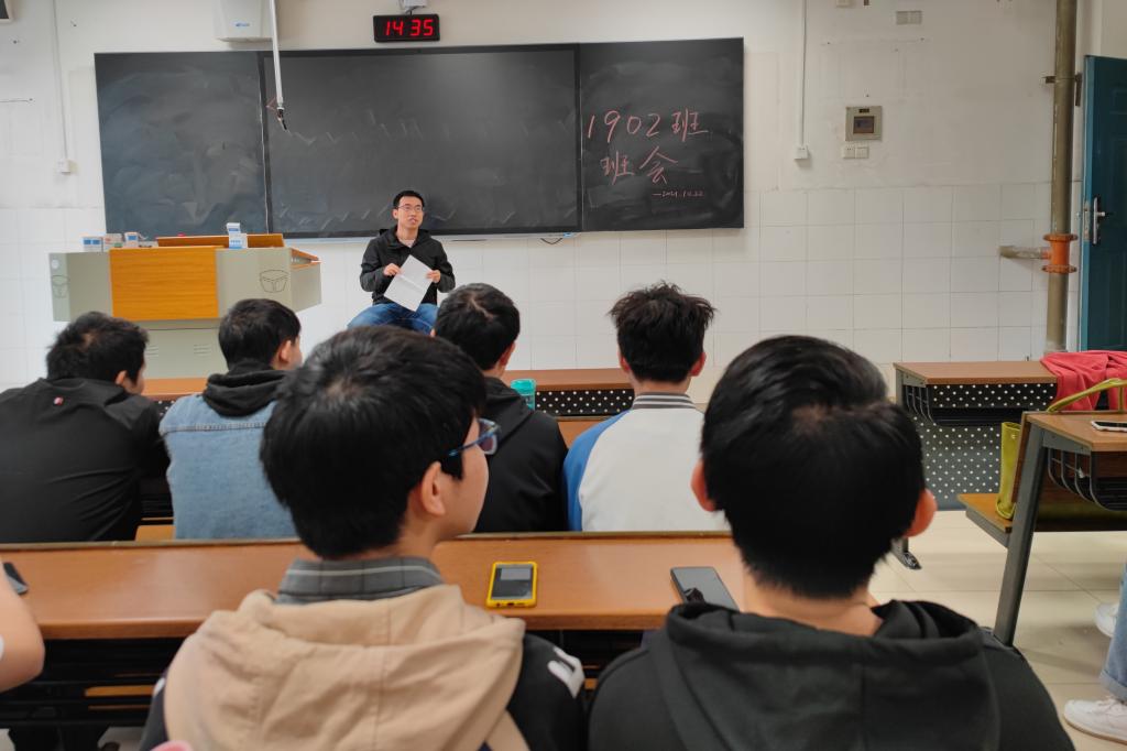 班会上,刘红文首先进行了自我介绍,并认识了班级干部及大部分同学。随后刘红文结合自身经历,从不同角度出发,针对同学们在考研、就业、学习等方面遇到的问题进行解答,并提出相关建议。