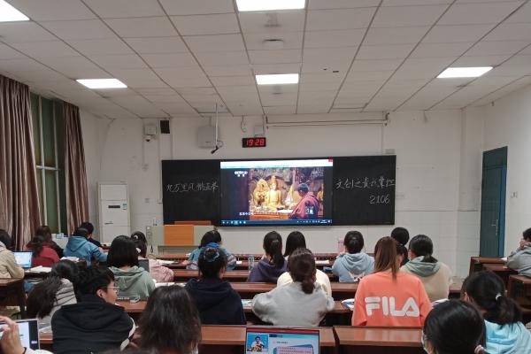 活动伊始,由谢培琳发表团日活动开展讲话,对此次活动主题进行阐述分析。随后,谢培琳带领大家观看纪录片《国家宝藏》,进一步了解文创之责任对于青年一辈的意义,深化了团日活动主题意义。