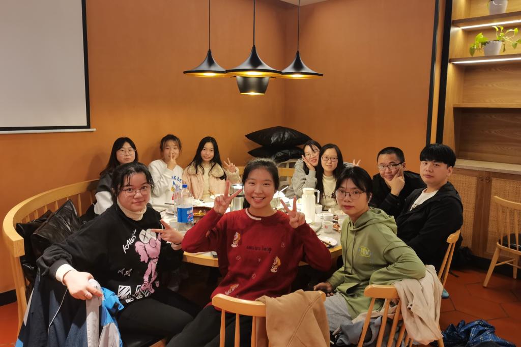 为了让班集体活跃起来,2002团支部班长寇周亮协同生活委员周柳辰举办了一次班级聚餐活动。下午18:00,班级学生先后抵达大碗先生餐馆,人员到齐后,同学们开始点餐。在聚餐中大家的表现都特别积极活跃,很快就带动了轻松愉快的氛围,桌上其乐融融,席间众同学各自以茶代酒来表达彼此的友谊。随后大家去往KTV,且都很积极的展现自己的歌喉。