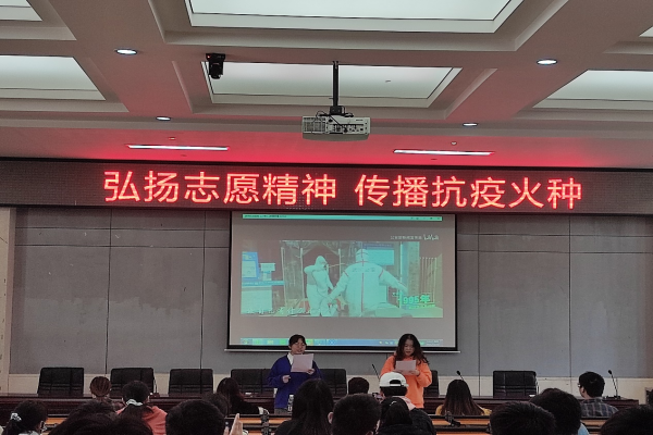 此次宣讲会以“弘扬志愿精神,传播抗疫火种”为主题,四位主讲人分别为团委青工部负责人金佳会、青工部拓展部负责人薛婧媛、区校共建部负责人滕蜜、青工部活动部责人彭凤琳。