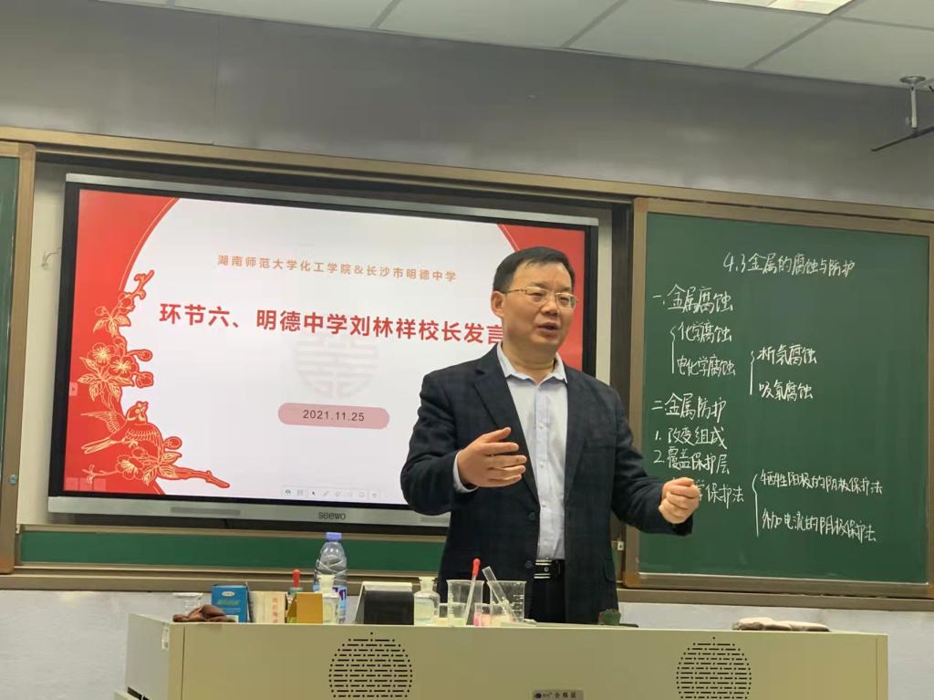 化工院副院长谭亮对此次活动进行了总结性发言,谭亮为明德中学对实习生工作的大力支持表示感谢,并希望以后有机会可以加强明德中学和我院的合作交流。他对学生在实习过程中取得的成绩表示肯定,并提醒实习老师在实习末期需要注意的一些问题,希望实习生珍惜实习机会,为实习工作画上一个圆满的句号。