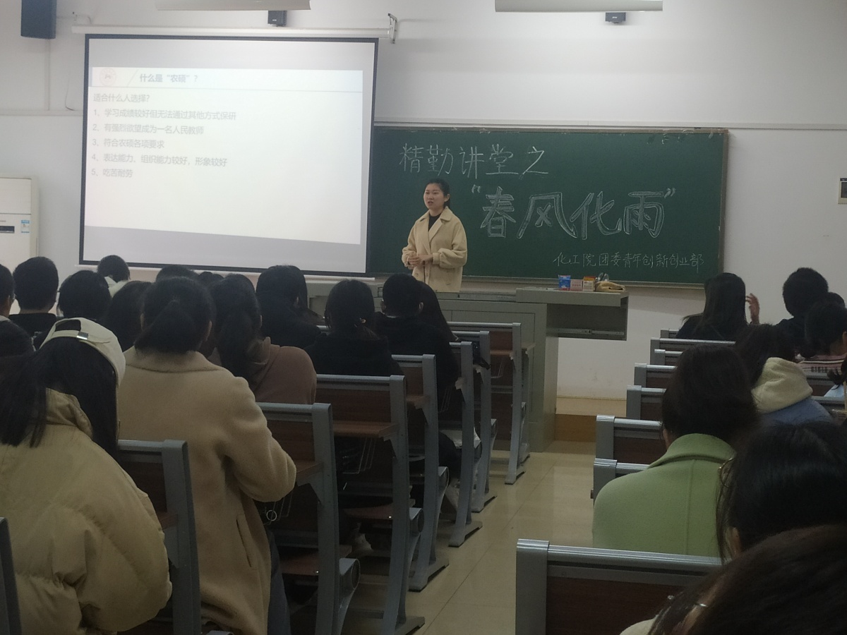 此次活动详细介绍了卓越教师计划和农硕保研相关知识,现场气氛活跃,各位同学积极提出疑问,促进了同学们对保研更加深刻的了解,为同学们未来的学习规划提供了宝贵建议。