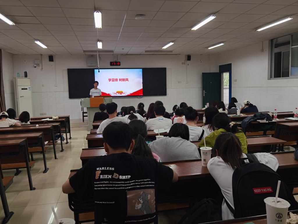 此次团日活动三个部分组成,分别是雷锋生平、雷锋精神和分析支援服务经历。团支书彭玲丽通过幻灯片和团支部成员一同回顾了雷锋的生平经历,感受了雷锋日记中记录的雷锋精神。吴昊、杨淑婷、陈玉娇分别分享了自己的志愿服务经历,并探讨了自己对雷锋精神的理解。