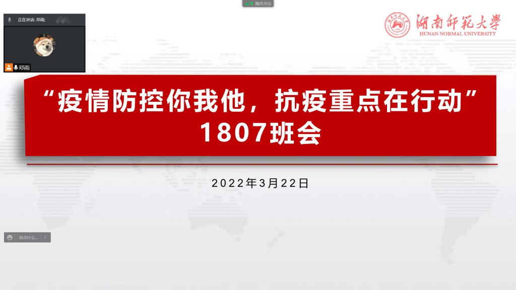 (通讯员 邓雨)3月22日13时,伟德国际19491807班在线上举行“疫情防控你我他,抗疫重点在行动”主题班会,此次会议由邓雨主持,1807班所有同学参加此次会议。